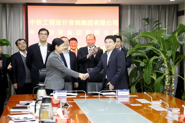 2017年10月12日,中鐵設計集團、中鐵物貿(mào)集團戰(zhàn)略合作協(xié)議簽字儀式在中鐵咨詢大廈1210會議室舉行,雙方就加強戰(zhàn)略合作,強化優(yōu)勢互補,實現(xiàn)互利雙贏,促進協(xié)同發(fā)展,達成了重要共識。中鐵設計集團董事長、黨委書記李壽兵,總經(jīng)理王洪宇;中鐵物貿(mào)集團董事長、黨委書記馬元林,總經(jīng)理黃懷鵬共同出席了簽字儀式。中鐵設計總經(jīng)理王洪宇主持簽字儀式。中鐵設計市場總監(jiān)、董事會秘書武農(nóng),中鐵物貿(mào)集團副總經(jīng)理王勇周代表雙方在戰(zhàn)略合作協(xié)議上簽字。