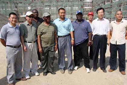 周大使和博阿凱副總統(tǒng)逐一參觀了在建的各個(gè)建筑,仔細(xì)查看工程質(zhì)量,并不時(shí)向項(xiàng)目經(jīng)理和我設(shè)計(jì)代表詢問了解情況。博阿凱副總統(tǒng)對(duì)項(xiàng)目的質(zhì)量和進(jìn)度非常滿意,稱贊中國(guó)公司在短短兩年內(nèi)就在雜草叢生的荒地上建起宏偉的現(xiàn)代化建筑群,體現(xiàn)了中國(guó)速度,令人驚嘆。他說,芬德爾分校新校舍將給利比里亞的年輕人帶來良好的學(xué)習(xí)環(huán)境,也將激勵(lì)他們刻苦學(xué)習(xí)、報(bào)效國(guó)家;該項(xiàng)目是中利友好合作的象征和見證,是利比里亞的驕傲,利比里亞人民將永遠(yuǎn)銘記中國(guó)政府和人民的深情厚意。隨后,博阿凱副總統(tǒng)按當(dāng)?shù)剌^高禮遇向項(xiàng)目承建單位贈(zèng)送了兩只山羊,對(duì)中國(guó)工人的辛勤勞動(dòng)表示慰問和感謝。
