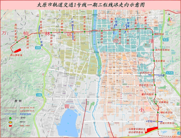 2.項(xiàng)目概況:太原市城市軌道交通1號(hào)線一期工程起于西山礦務(wù)局,終于龍城大街東站,經(jīng)過(guò)萬(wàn)柏林、迎澤、小店三個(gè)行政區(qū),于太原市內(nèi)呈倒“L”形分布,東西向沿西礦街、迎澤大街,途經(jīng)客運(yùn)西站、理工大學(xué)、大南門、柳巷、五一廣場(chǎng)、太原站等客流集中點(diǎn),南北向先后沿太行路、馬練營(yíng)路敷設(shè)。工程全線長(zhǎng)24.38km,共設(shè)置車站22座,全部為地下站。工程設(shè)西山停車場(chǎng)一座,設(shè)馬練營(yíng)車輛段與綜合基地一座;新建客運(yùn)西站、長(zhǎng)風(fēng)東街站兩座主變電站。1號(hào)線與線網(wǎng)其它市區(qū)線合建共享控制中心。預(yù)計(jì)建設(shè)周期為5年。