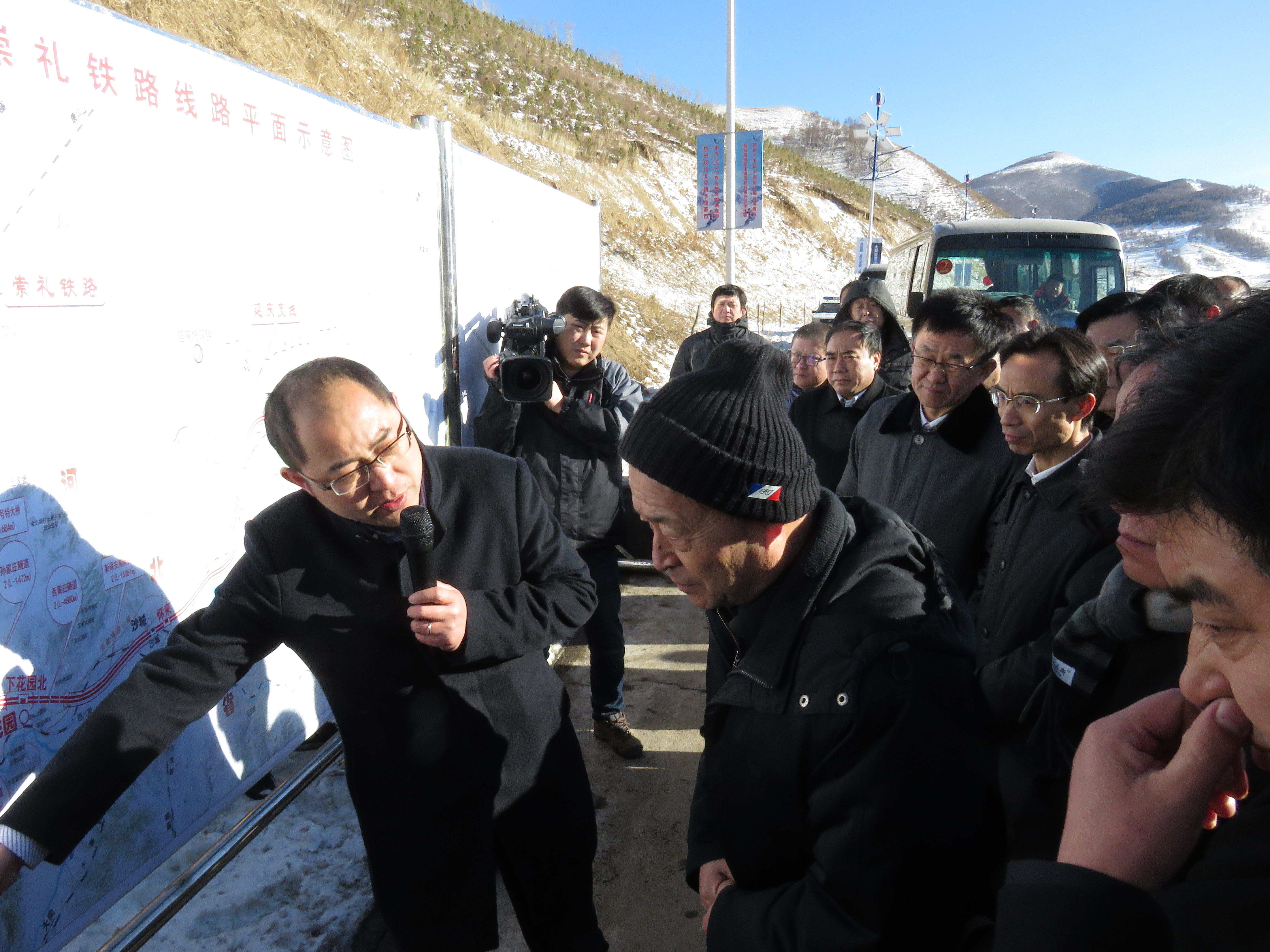 2016年2月18日,國家交通運(yùn)輸部部長楊傳堂、河北省副省長姜德果等領(lǐng)導(dǎo)及部、省有關(guān)部門負(fù)責(zé)同志一行在春節(jié)喜慶祥和的氣氛中冒著寒風(fēng)到京張、崇禮鐵路現(xiàn)場調(diào)研并指導(dǎo)工作,中鐵咨詢集團(tuán)副總經(jīng)理蔣偉平、主管總工喬俊飛、計(jì)經(jīng)處副處長吳夯、項(xiàng)目總體、線站院有關(guān)設(shè)計(jì)人員陪同參加調(diào)研。