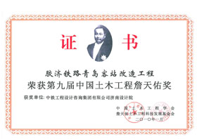 青島火車站QC攻關(guān)小組,共獲得國家級獎2項,省部級獎3項;獲得國家級優(yōu)秀咨詢成果二等獎,國家級優(yōu)秀設(shè)計二等獎,鐵道部優(yōu)秀設(shè)計一等獎,第九屆中國土木工程詹天佑獎。